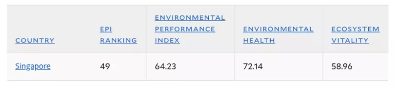 Singapore is ranked 49th on the Environmental Performance Index (2018)