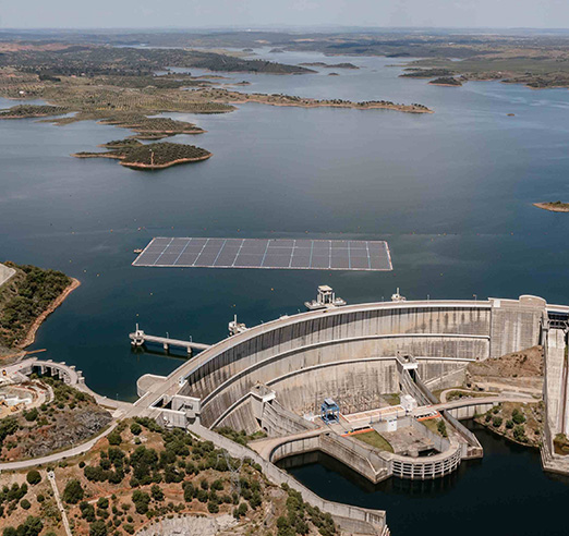 Inaugurated in 2022, the Alqueva Floating Solar Power Plant is Europe's largest floating platform for solar energy production on a dam reservoir. Located in Portugal, this pioneering project enhances the existing hydropower infrastructure by integrating solar energy, demonstrating innovative approaches to an existing infrastructure, such as hydroelectric dams, and think about increasing their potential.