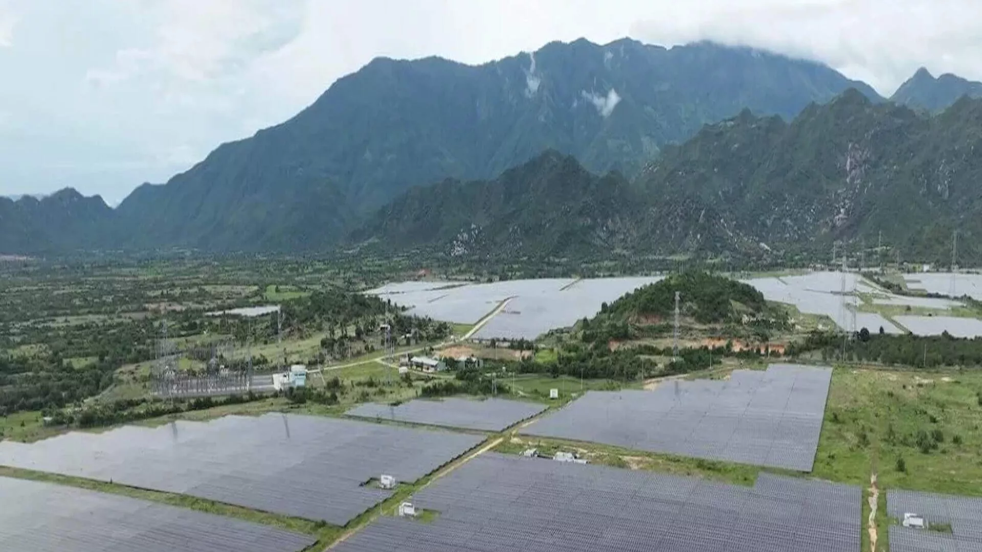Parque solar montado no solo na comuna de My Son, província de Ninh Thuan