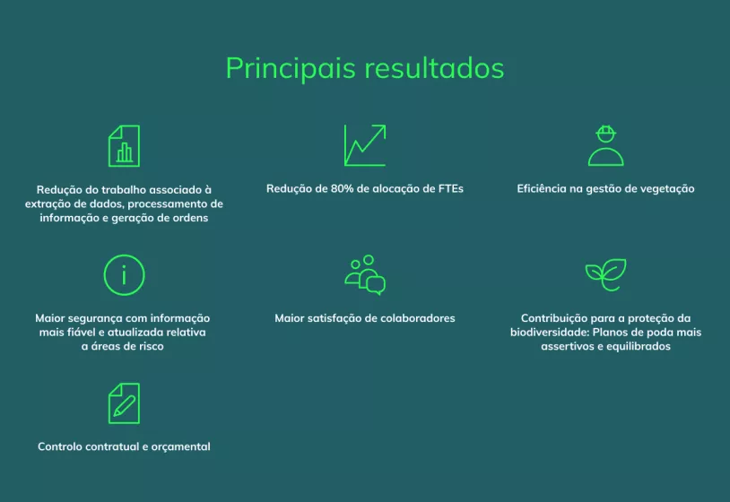 O projeto Analytics4Vegetation está em implementação desde 2022, a nível nacional. Desde então, tem havido uma melhoria contínua do projeto, visando tornar as previsões de crescimento mais apropriadas e confiáveis. Esta abordagem visa mitigar situações de falso alarme e a necessidade de deslocações, o que resulta na otimização dos recursos da gestão de vegetação.