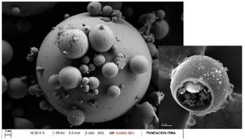 Figura 8. Cenizas volantes y cenosferas (partículas huecas)