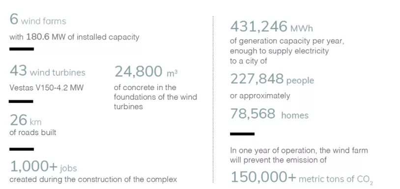 This complex includes the Monte Verde I–VI, Boqueirão I–II, and Jerusalém I–VI wind farms. Together, they have the capacity to generate more than 3 million MWh/year, enough electricity to power a city of more than 1.5 million people. The project will avoid the emission of more than 1 million metric tons of CO2 each year.