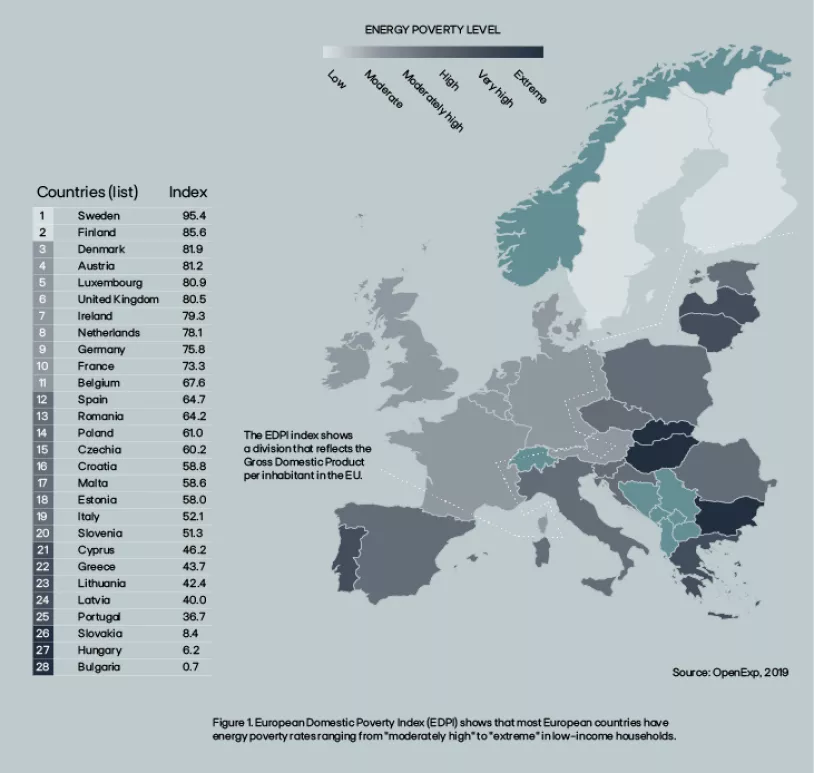Analyzing Europe's ranking in terms of energy poverty, it is clear that the countries that traditionally occupy the top of the table in terms of other indicators of wealth, are also those that occupy the top half of this table, as is the case of Sweden, Germany and France.